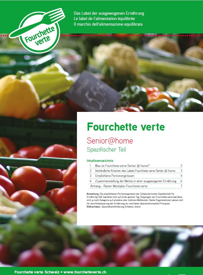 Die Labels Fourchette verte und Fourchette verte – Ama terra senior@home fördern eine ausgewogene und nachhaltige Ernährung für ältere Menschen, die Mahlzeiten über den Mahlzeitendienst erhalten.
