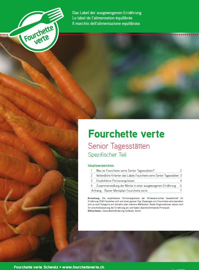 Die Labels Fourchette verte und Fourchette verte - Ama terra Tagesstätten Senior, fördern eine ausgewogene und nachhaltige Ernährung für ältere Menschen, die in Alters- und Pflegeheimen leben.